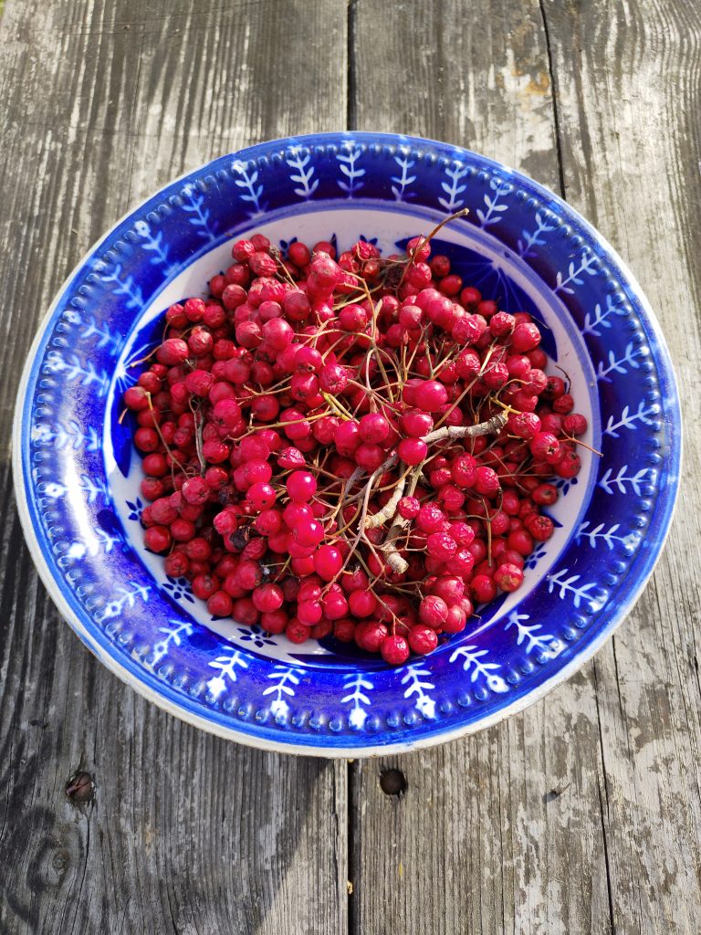 By zrobić sok potrzebujemy 1 kg owoców jarzębiny i 0,5 kg cukru.